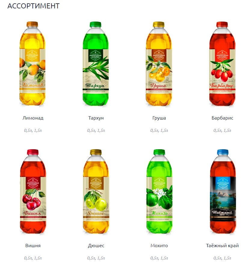Кроме того, на ООО «Кавказском бювет» запущены линии по производству сладких напитков – серия «Лимонадные истории» включает в себя 8 видов напитков – Лимонад, Тархун, Барбарис, Мохито, Груша, Дюшес, Вишня, Таежный край.